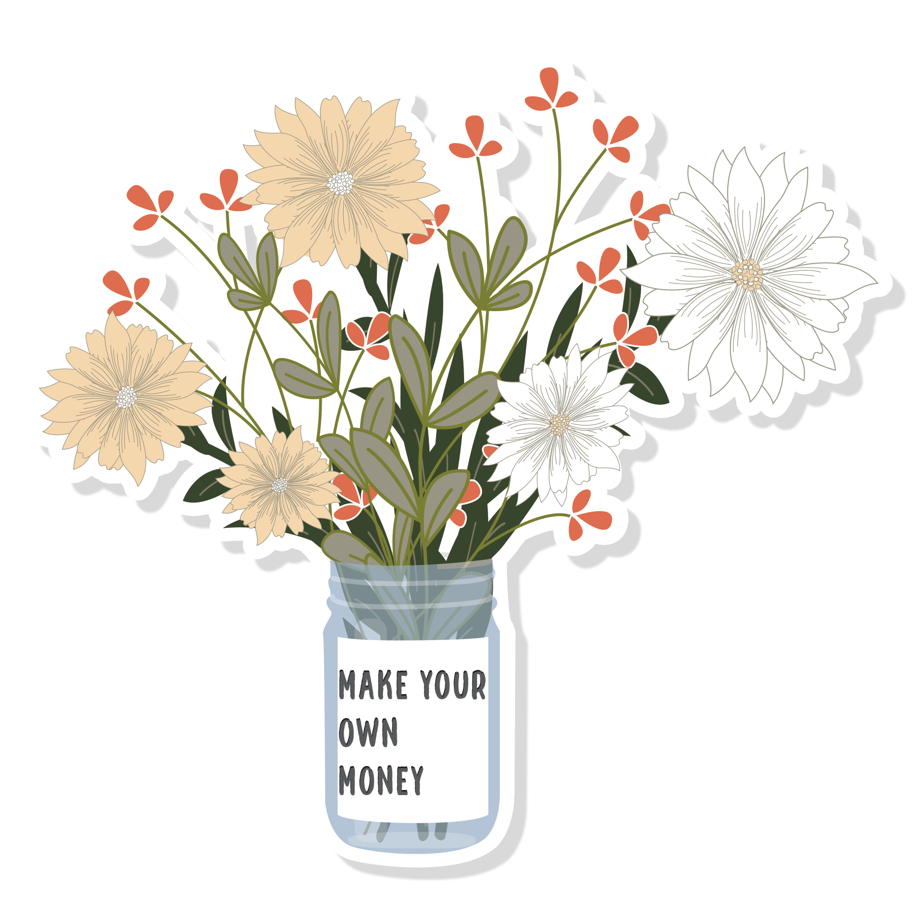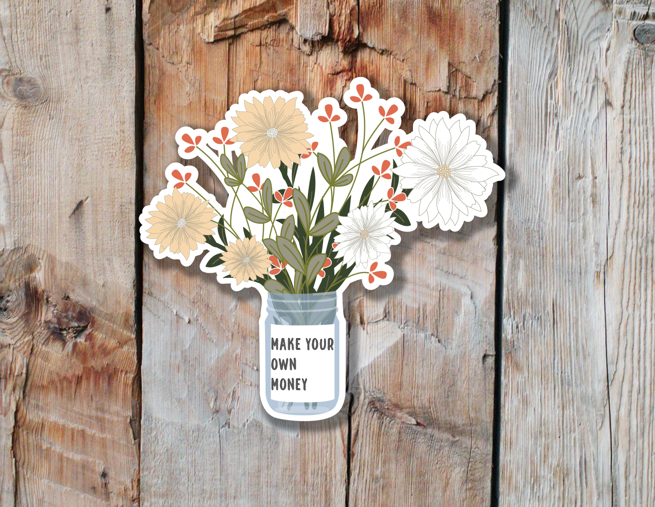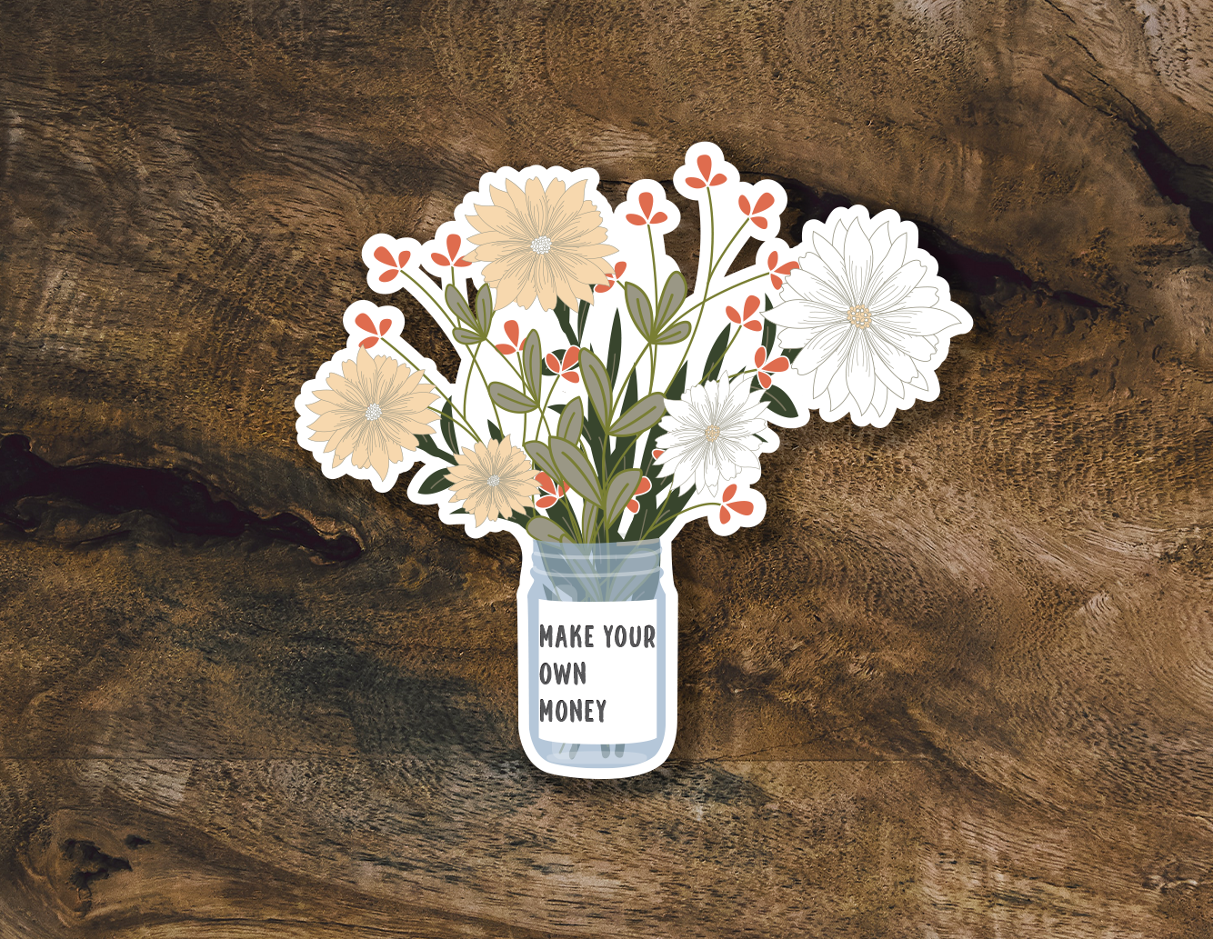 Wild Flower Bouquet Sticker | Make Your Own Money Sticker | Feminist Stickers | Independent Women Stickers | Trendy Floral Stickers|